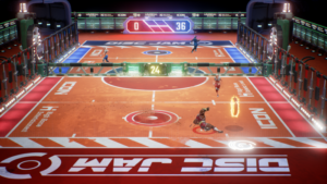 “Disc Jam é um jogo de ação-esporte de ritmo acelerado que enfrenta 2-4 jogadores uns contra os outros em uma combinação frenética de hóquei e tênis. Os jogadores procuram recuperar e lançar um disco brilhante enquanto desencadeiam habilidades devastadoras e defendem sua zona final”
