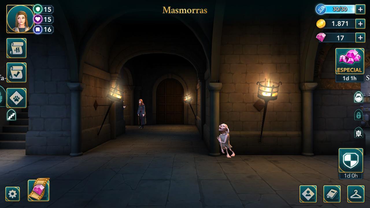 • Masmorras: Clique no elfo doméstico quando ele estiver dormindo encostado na parede.