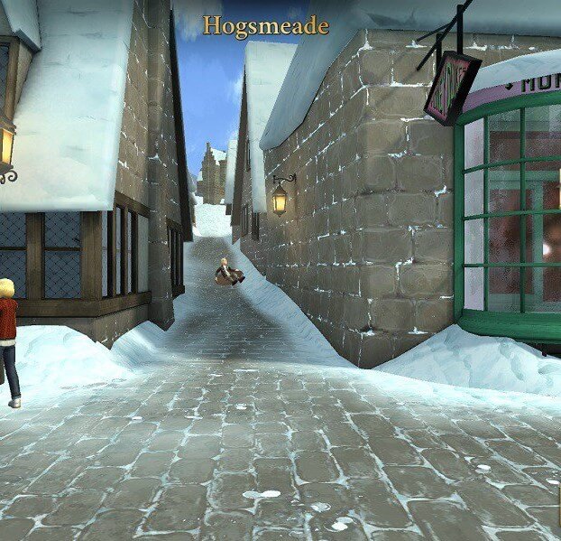 • Hogsmeade: Interaja com o menino que está segurando um trenó.