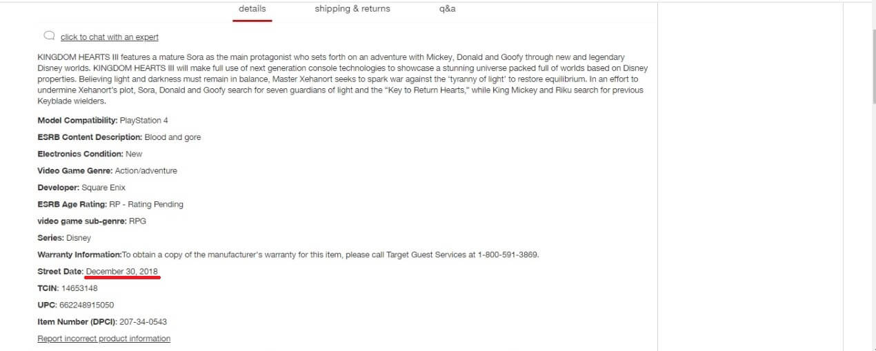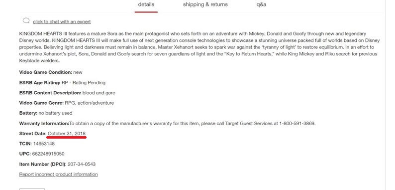 A loja americana Target listou o jogo para ser lançado em Outubro e pouco tempo depois o listou para Dezembro. A data está marcada especificamente para 30 de Dezembro de 2018. Nada foi confirmado oficialmente ainda, mas podemos levar essa data em consideração. Enfim, verdade ou não, a data deixou os fãs do game esperançosos.