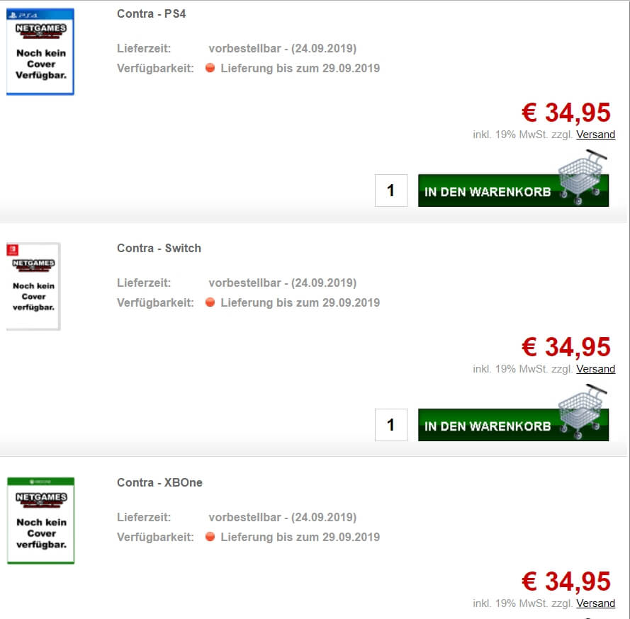 De acordo com o NetGames, site de varejo alemão, um novo jogo da franquia Contra pode das as caras em breve. O site listou um novo Contra que por sua vez teria versões em mídia física para PlayStation 4, Xbox One e Nintendo Switch.
