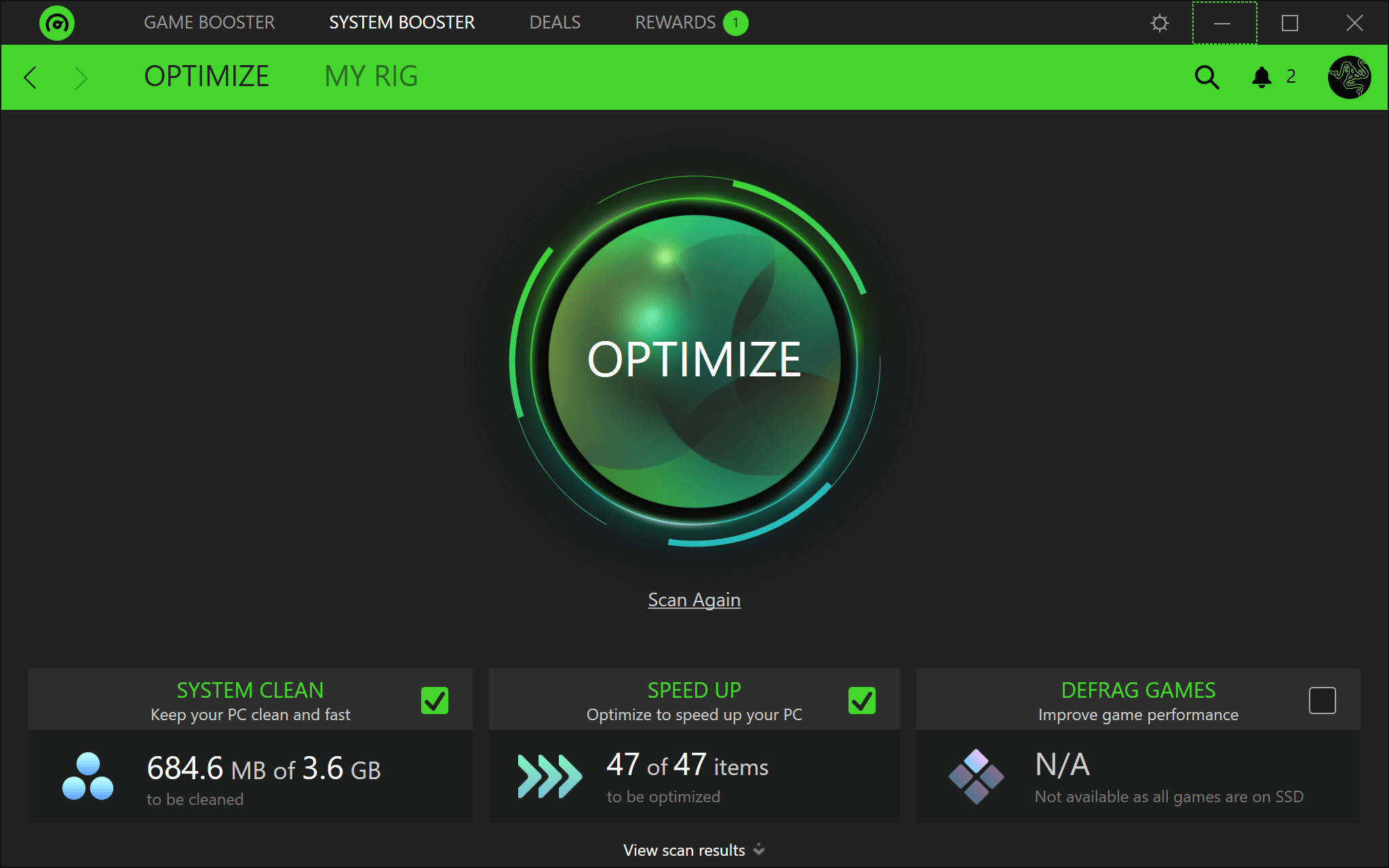 O Razer Cortex 9.0 conta com um recurso capaz de filtrar e eliminar todos os arquivos indesejados que se acumulam no computador ao longo do tempo. E não apenas isso, como também elimina arquivos indesejados de programas deixados por game launchers como Steam, GOG e Battle.net. Com essa varredura, o desempenho do PC melhora e os jogos rodam melhor.