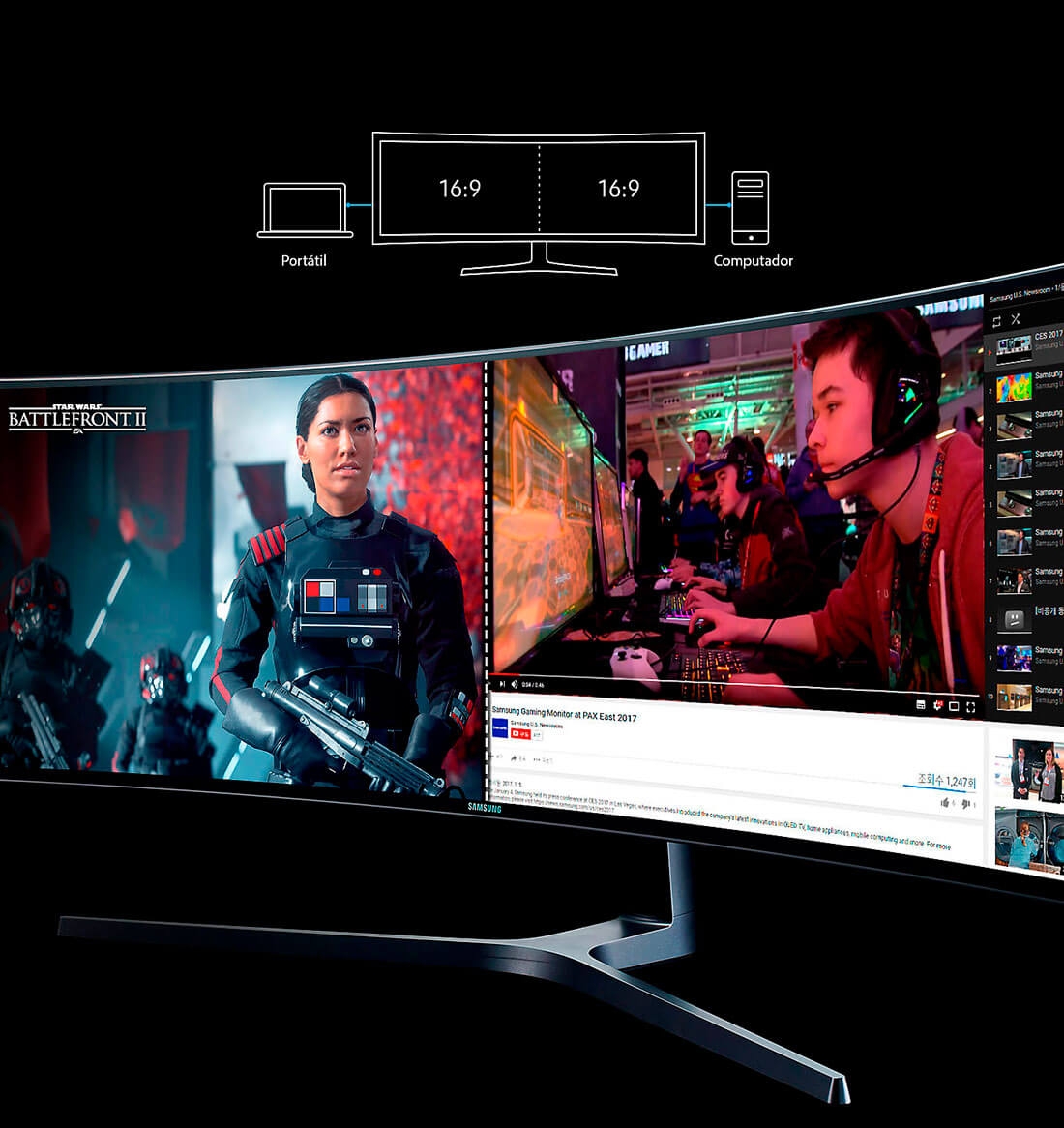 A Samsung anunciou a chegada de um monitor Gaming CHG90, sendo o maior monitor gamer QLED. Com 49 polegadas e 3840X1080 de resolução, o monitor possui imagens realistas e baixa latência com um tempo de resposta muito bom.